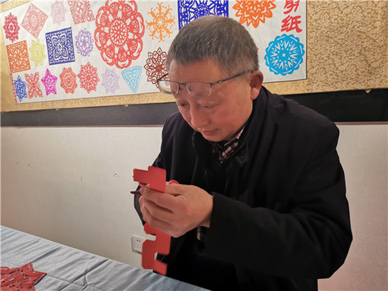 曾德元正在剪喜字。華龍網—新重慶客戶端 冉長軍 攝