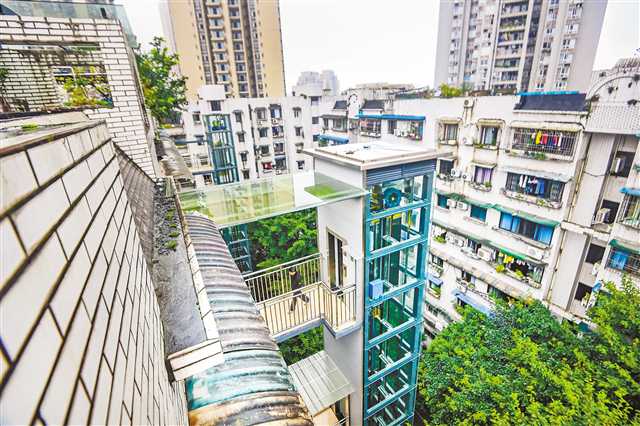 二○二○年十一月一日,渝中區大坪街道,競地城市花園10-1單元樓加裝的電梯已投入使用。(本報資料圖片)記者 龍帆 攝\視覺重慶