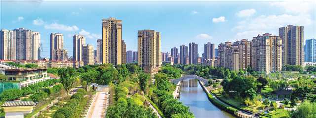 在城區擴容方面,榮昌高標準推進黃金坡新區建設,現已全面構建起“兩橫三縱”道路骨架,城市建成區由“三河六岸”拓展至“四河八岸”,達到41.96平方公里規模。