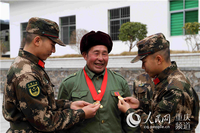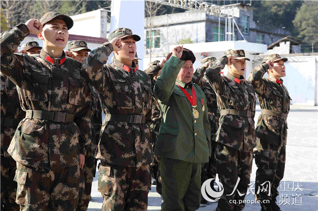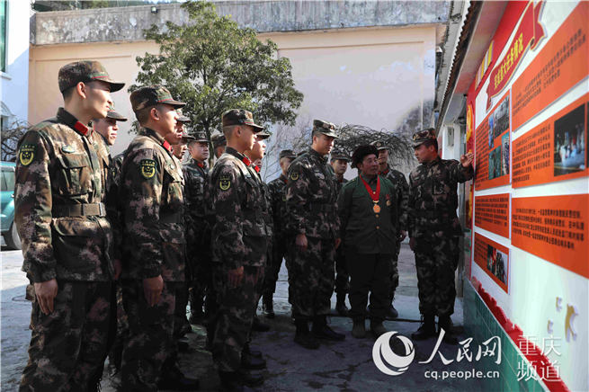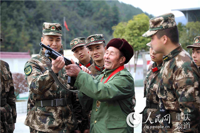 人民網重慶1月24日電 近日,88的志愿軍老戰士楊永昌時隔63年重返軍營,來到武警重慶總隊執勤五支隊酉陽中隊。與官兵追憶崢嶸歲月,激勵新戰士刻苦訓練,走好“兵之初”。