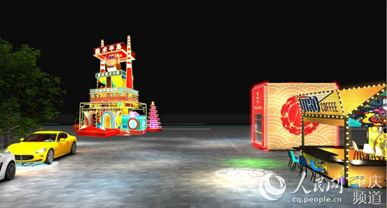 中迪廣場上,以美術公園為主體的燈組,把未來的美術公園提早搬到了廣場上,就連黃桷坪街上的小火車商鋪也被搬了過來。中迪廣場將以售賣文創產品、網紅產品、特色美食為主,將吸引更多年輕人前來打卡。