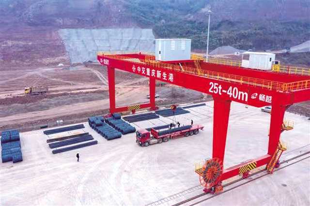 新生港是重慶市核心港區之一,為交通運輸部批復的首個長江上游水工結構萬噸級碼頭。一期工程按照“前港中倉后園、鐵公水聯運”規劃,吞吐量達720萬噸。據項目承建單位重慶中交新生港建設發展有限公司負責人介紹,目前建設工程進展順利,可望在今年上半年投入運營。