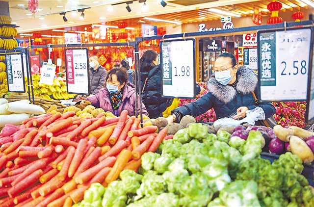 2021年1月28日,永輝超市南坪萬達店,市民正在挑選新鮮蔬菜。記者 鄭宇 攝/視覺重慶