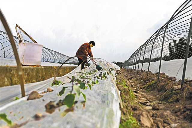 大足區龍水鎮橫店村蔬菜基地,村民正忙著管理蔬菜。通訊員 黃舒 攝/視覺重慶