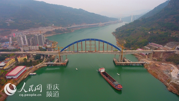 人民網重慶1月30日電 30日上午,由中鐵十一局集團承建的鄭萬高鐵彭溪河多線特大橋主跨鋼管拱順利合龍,標志著大橋主體工程基本完工。