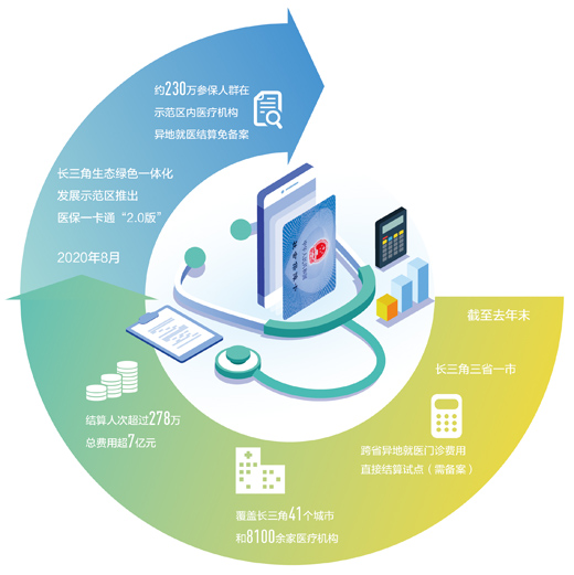 2018年以來,長三角一體化發展加速推進。2018年9月,長三角地區異地就醫門診費用直接結算開通8個試點統籌區;2019年4月,試點擴大到17個城市;2019年9月,實現長三角41個城市全覆蓋,患者只要在參保地辦妥異地備案手續,就能在就醫地使用新版社?ㄖ苯咏Y算。