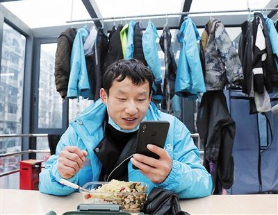 “看到電視里大家都在抗疫,想到我如果每天多送幾單,其他人就可以少出一趟門,就趕緊上班了!焙儡娀貞,那段時間,配送量最多的一天,他從早上9點忙到晚上9點,一共送了60多單!盎旧厦看嗡拓浂际擒囎涌煅b不下了,累是累,但心里很愉快!