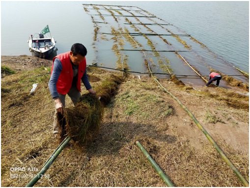 “每年3到6月是魚類產卵期。通常情況下,魚兒會將卵產在江邊巖壁的青苔上,但因其附著力不強,被水流沖散后會大大影響成活率,人工魚巢恰好解決了這一難題!遍L江重慶江津段鴻鵠護漁志愿隊隊長劉鴻介紹,志愿者們將水游草捆扎成束,一束束用竹框架固定起來,再將一個個這樣的竹框架投入江中,用竹竿連接成網格,人工魚巢就建成了。劉鴻稱,人工魚巢起到了水草的作用,粘附性強,魚兒在此產卵成活率高,還能避免其他天敵的襲擾。同時,人工魚巢靠近岸邊,遠離主航道,既利于魚卵孵化,也不會影響正常航運。