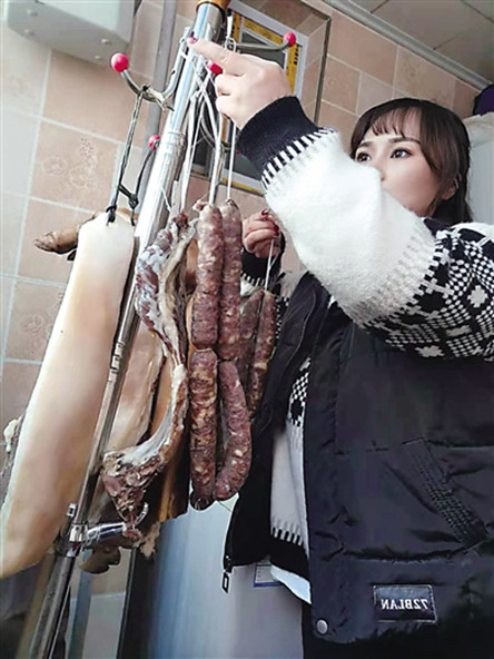 這是我家第一次留在重慶過春節,所以必須要將它過得更精彩。在老媽的帶領下,1月初,我們就開始灌香腸、腌臘肉,全家人在一起備肉、拌調料、灌腸,然后再前往附近的熏制點熏肉。香腸、臘肉做好后,我還送了一部分給員工和朋友,我覺得“年味”就應該與人分享。