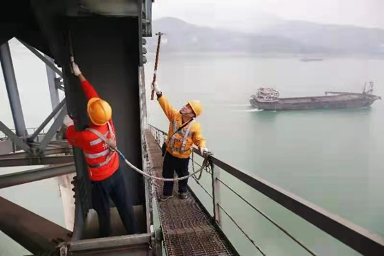 長壽長江特大橋上守護者正在全面“體檢”。 徐強攝