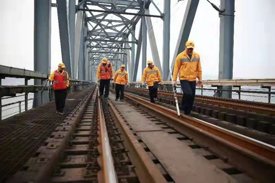 “平時我們每月都通過上橋梁、下橋墩等方式對大橋進行一個全面的‘體檢’,春運期間,每天都有70余趟旅客列車及重載貨物列車從大橋通過,通行量比平時大,所以我們安排節前專項檢查,加強鐵路線路巡檢和鋼梁體的巡檢,全力確;疖嚢踩ㄐ!蓖躏w一邊收拾檢查工具,一邊沿著橋梁兩側狹窄的檢查梯爬上鋼梁頂部。