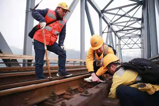 人民網重慶2月10日電 春運啟動以來,隨著列車車次增加,鐵路部門加大了對鐵路和轄區特大橋的檢查巡查力度,確保春運列車安全通行和廣大歸鄉旅客平安到家。王飛和他的班組就是其中之一。
