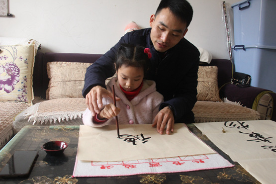 魏俊巖教女兒書寫家訓。 巴南區融媒體中心供圖