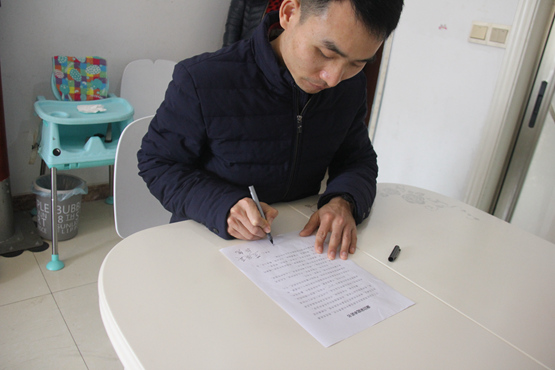 魏俊巖在廉潔家庭承諾書上簽字。 巴南區融媒體中心供圖