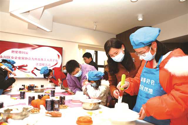 當日,永川區開展“把愛帶回家——永川區女企業家協會為外出務工人員子女送溫暖活動”。在現場,女企業家們為20名孩子講述勵志故事,和孩子們一起做蛋糕,還向孩子們贈送了書包、特產等物品。