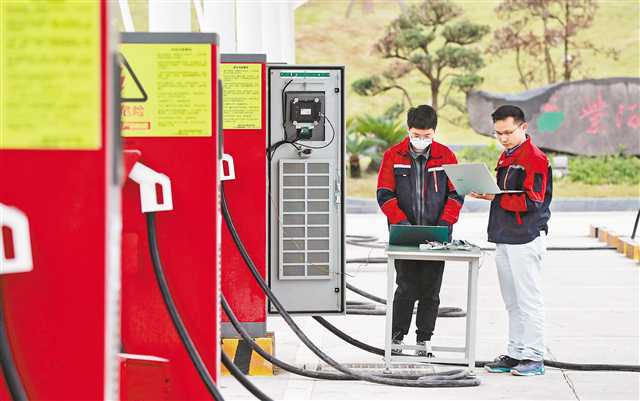 2月18日,在璧山高新區,重慶高新技術產業研究院的科技人員在調試新型碳化硅半導體充電樁。特約攝影 謝捷/視覺重慶