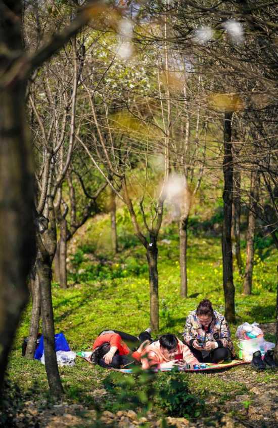 2月21日,市民在林間草地上休閑娛樂。羅嘉 攝
