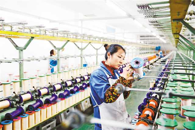 2月26日,女工在黔江區工業園區花神絲綢有限公司生產車間勞作。春節復工復產后,黔江區工業園區協助絲綢公司,組織人力開足馬力生產,加工海外訂單,確保員工穩崗增收,按時按質完成訂單!√丶s攝影 楊敏/視覺重慶