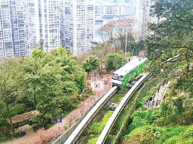 近日,開往春天的列車頻頻爆紅網絡,在重慶軌道交通2號線佛圖關段,單軌列車在盛開的美人梅花簇擁下穿行,吸引了眾多市民游客的關注。