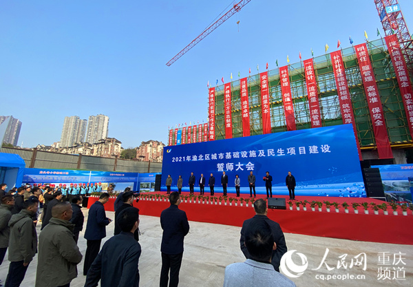 2021年渝北區城市基礎設施及民生項目建設誓師大會現場。人民網 劉政寧攝
