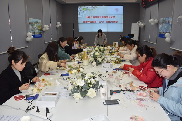 女職工制作DIY永生花相框。中建八局西南公司重慶分公司供圖