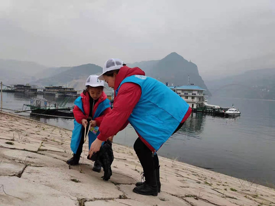 志愿者清理河邊垃圾。 巫山縣委宣傳部供圖