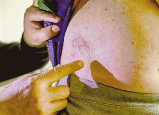 在上甘嶺戰役中,蔣誠腸子被炸出來,他重新塞回去繼續作戰,留下了這道凹進去的傷疤。