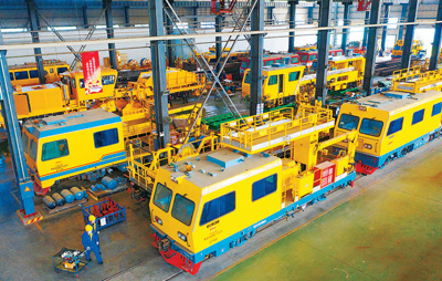 日前,湖北省襄陽市時瑞達重型工程機械有限公司加緊制造出口國外的鐵路配砟整形車。據了解,該公司目前的國際訂單已排產到明年5月。圖為公司生產車間。