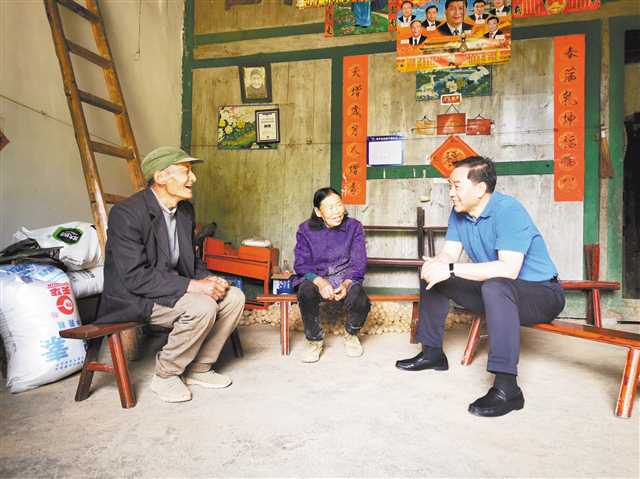 楊樹海(右)在群眾家里走訪。 (奉節縣委宣傳部供圖)