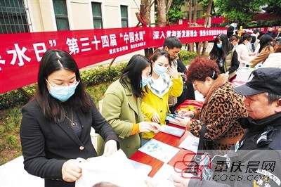 重慶市水利局在渝北區松牌路社區開展“世界水日”宣傳活動現場。上游新聞記者 甘俠義 攝
