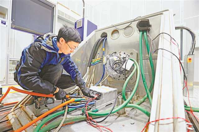 日前,重慶車檢院研究人員正在實驗室對汽車進行檢測。記者 羅斌 攝/視覺重慶