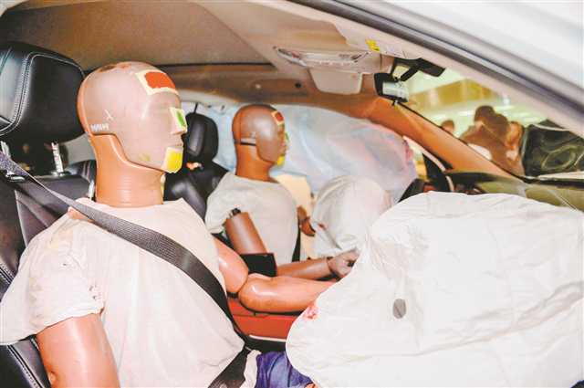 2019年10月24日,在長安汽車工程研究院碰撞安全中心,一輛長安CS75Plus在無人駕駛狀態下以每小時64公里的速度撞向工作臺面后,假人頭部按預計撞擊在安全氣囊的保護區域。記者 張錦輝 攝/視覺重慶