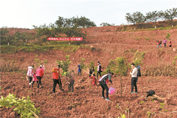 “大家在栽樹的時候,一定要注意土坑要挖好,樹栽好后一定要記得澆水!苯,筆者在三元鎮廟壩村看到,廣大干群在技術人員的指導下,分工協作,紛紛拿起鐵楸,挖坑、栽苗、培土、澆水,迅速投入到紅心柚樹苗移栽中,現場一派熱火朝天的繁忙景象。