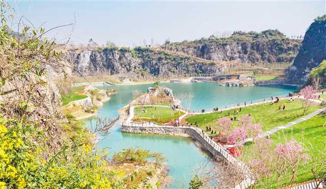 3月28日,銅鑼山礦山公園,峭壁懸崖下,清澈的湖水湛藍動人,寬敞的草坪上盛開著鮮花,吸引了眾多游客前往游玩。通過綜合治理+生態修復,位于渝北區石船鎮的銅鑼山礦山公園于今年年初公益性開園。