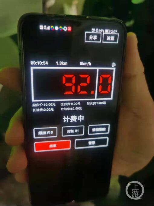 執法人員告訴記者,他們現場檢查發現:駕駛員唐某所謂的計價器是他手機上安裝的一個軟件,從乘客上車到車輛被查,不到20分鐘的時間,該軟件顯示費用為92元。