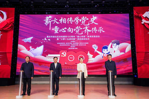 人民網重慶4月2日電 (劉政寧)為教育引導中小學生從小聽黨話、感黨恩、跟黨走,培養擔當民族復興大任的時代新人,4月2日下午,渝北區慶祝建黨100周年“童心向黨”教育實踐活動暨“小蘿卜頭進校園”活動在渝北區巴蜀小學校正式啟動。