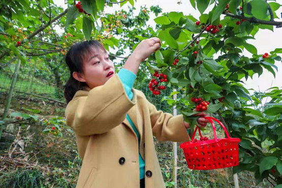 游客采摘櫻桃。璧山區委宣傳部供圖