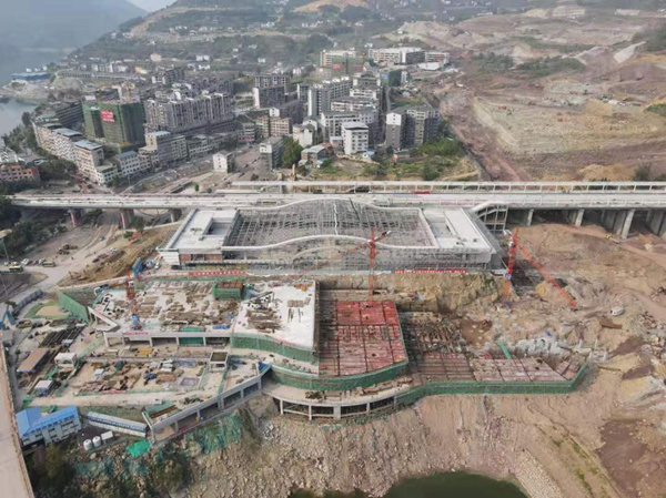 正在建設的鄭萬高鐵云陽站站房。云陽縣交通局供圖