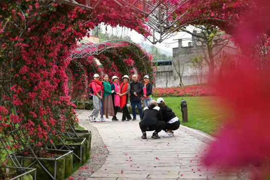 中梁山花博園內的“鮮花隧道”吸引游客拍照打卡。陳林攝