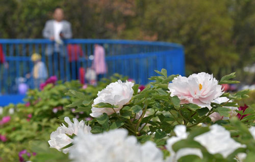 菏澤市曹州牡丹園的牡丹花競相開放(4月8日攝)。新華社記者 李賀 攝