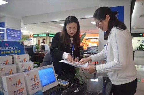 工作人員(左)講解通辦事項。梁平區委宣傳部供圖