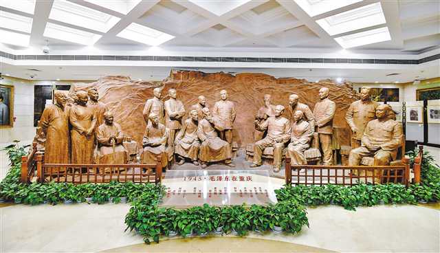 4月9日,重慶日報記者走進位于上清寺的中國民主黨派歷史陳列館,首先被映入眼簾的大型群雕所吸引。這座名為“1945·毛澤東在重慶”的紀念雕塑,形象化、藝術性地再現了毛澤東、周恩來與各民主黨派領導人、知名人士聚會重慶,暢所欲言、共商國是的情景。