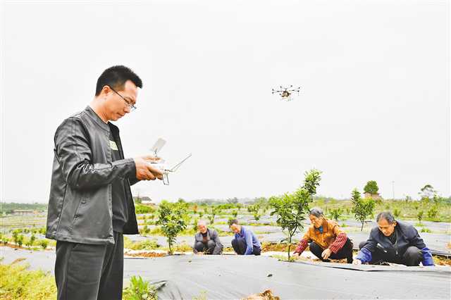 4月6日,長壽區雙龍鎮,工作人員正在操作無人機作業。