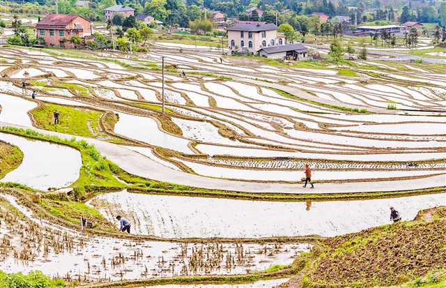 4月9日,南川區石溪鎮鹽井村,村民們在梯田里忙碌。