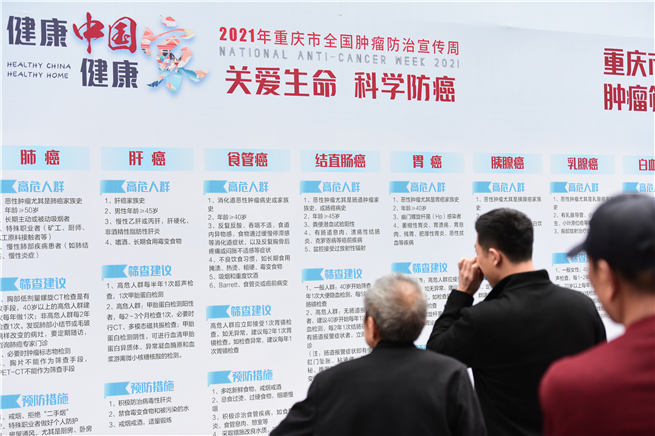 人民網重慶4月13日電 (陳琦)4月13日,在重慶市第二十七屆全國腫瘤防治宣傳周啟動儀式上,重慶市腫瘤防治辦公室發布消息,2021年重慶市癌癥機會性篩查與早診早治項目正式啟動。