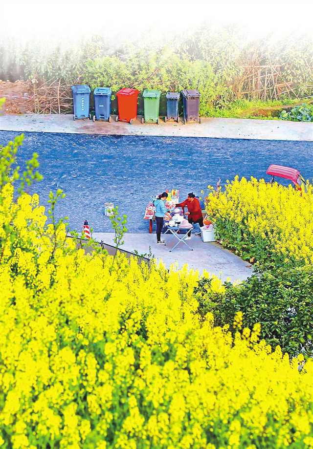 在畢橋村,村里依托干凈整潔的村容村貌,結合當地的籮篼文化、農耕文化以及山水田園景觀,引進了5家企業到村里來發展休閑采摘業。為豐富業態,去年村集體整合涉農資金,還修建了一座占地480平方米的鄉愁博物館,同時配套修建了占地1萬畝的油菜大觀園,市民不僅可以前來觀光游玩,還能進行種蔬菜、收油菜等多種農事體驗活動。