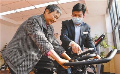 安徽省肥西縣上派鎮某居家養老服務中心,工作人員指導老年居民鍛煉身體。