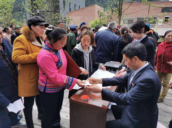 人民網重慶4月15日電 “分錢咯!”15日上午,重慶市石柱縣中益鄉華溪村舉行集體經濟第三次分紅大會,拿到分紅的村民們相互談論著這幾年的變化,笑容洋溢在每個人臉上。