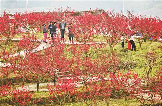 2020年3月17日,豐都縣保合鎮,滿園桃花盛開,踏春的人尋花而來,享受春天的美景。通訊員 高志相 攝/視覺重慶