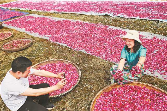 2020年五一長假期間,黔江區沙壩鎮天香玫瑰莊園的300畝玫瑰盛開,引來不少游客前來游玩、賞花和體驗采花、晾曬花瓣。特約攝影 楊敏/視覺重慶